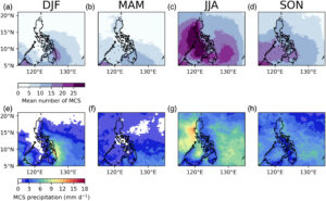 領域再解析(RRJ-Conv)の過去30年間のデータセットを利用し、梅雨前線低気圧を多数抽出し、渦半径と降雨量の関係と、渦半径による低気圧構造の統計的な特徴を明らかにしました。